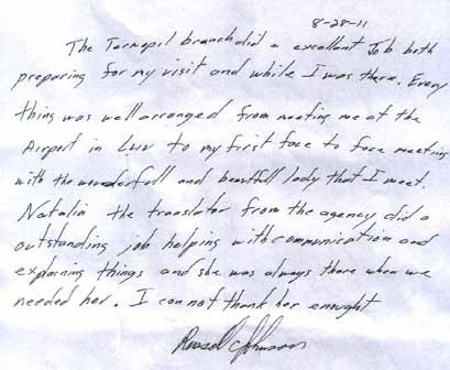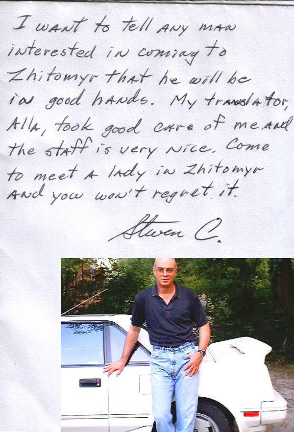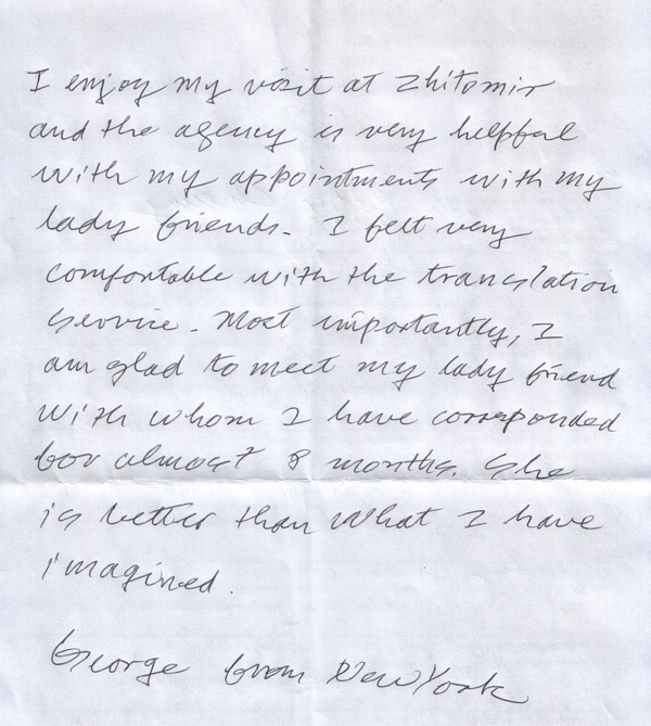 It was very nice to meet you and your staff recently when I came to Zhytomyr to meet Tanya. I enjoyed the